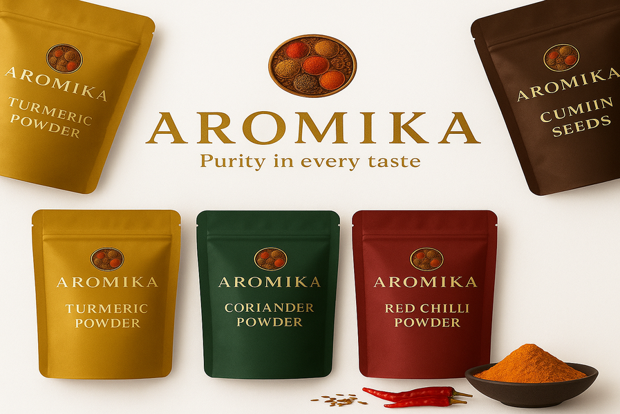 Founded with a vision to bring authentic, organic, and chemical-free ingredients directly from the farm to your home, Aromika Foods was born from a love for both health and flavor. Each product—from golden turmeric powders to aromatic red chili whole varieties—is carefully sourced to reflect the best of nature, preserving its richness and aroma.